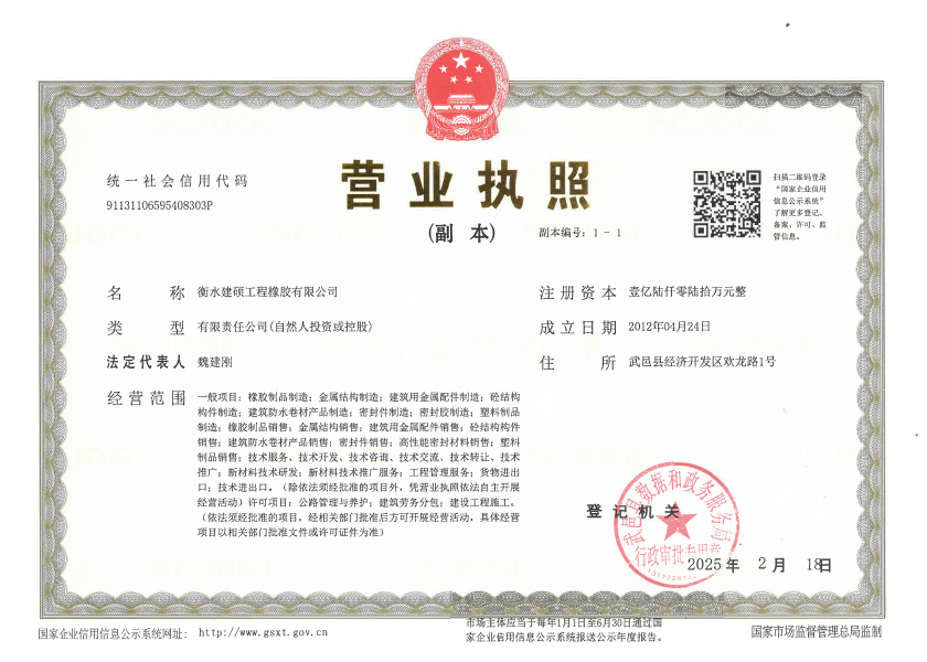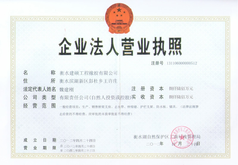 衡水建碩工程橡膠有限公司座落于衡水市濱湖新區,占地面積50000平方米,注冊資金壹億零捌拾萬元整,是生產橡膠支座、盆式支座、充氣芯模、伸縮裝置、止水帶的專業廠家。公司始建于九十年代,經過近二十年的發(fā)展壯大,現有員工300多人,其中高級技術人員45人,高級技工103人。
